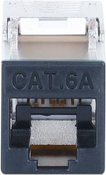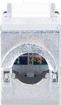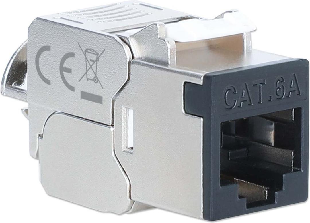 Der modulare Einsatz IC Intracom Intellinet wurde speziell für die Anforderungen moderner Netzwerkumgebungen entwickelt und verfügt über eine abgeschirmte Technologie für verbesserte Leistung. Dieser Keystone-Einsatz unterstützt PoE++ und ist mit 10 GbE kompatibel, wodurch er sich für die Hochgeschwindigkeits-Datenübertragung eignet. Er wurde für eine bequeme Installation entwickelt, lässt sich ohne Werkzeug installieren und ist für 22- bis 26-AWG-Massivdraht geeignet, wodurch eine optimale Konnektivität gewährleistet ist. Sein robustes Design umfasst Phosphorbronzekontakte mit 6 µ Goldbeschichtung für zuverlässige Verbindungen bei längerem Gebrauch. Das Produkt entspricht mehreren Normen, darunter IEEE 802.3bt und RoHS, und gewährleistet sowohl Funktionalität als auch Umweltsicherheit.