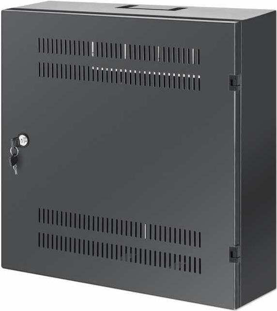 Schlankes, platzsparendes Netzwerk-Wandgehäuse-Rack für AV-Multimedia-Geräte und mehr Der Low-Profile 19"-Wandschrank mit horizontalen 4U- und vertikalen 2U-Schienen von Intellinet Network Solutions ist ein schlankes Rack-Gehäuse für Wohn- und SOHO-Umgebungen. Es organisiert und sichert Netzwerkgeräte aus den Bereichen Multimedia, Überwachung, Audio/Video und Heimautomatisierung und spart durch die Kombination von zwei Montageoptionen wertvollen Platz. Dank seiner geringen Tiefe ragt es nur 170 mm aus der Wand heraus, aber dank der vertikalen Montageoption können Sie auch sperrige Geräte wie Netzwerk-Switches mit einer Tiefe von bis zu 280 mm installieren. Das robuste Stahlgehäuse der Schutzklasse IP20 mit antistatischer Pulverbeschichtung kann mit einem sicheren Dreipunkt-Türschloss verriegelt werden, um Beschädigungen, Manipulationen oder Diebstahl zu verhindern. Es kann mit bis zu 60 kg belastet werden, und die Lüftungsschlitze sorgen für einen maximalen Luftstrom, damit Ihre Geräte kühl bleiben. Ihre strukturierte Verkabelung kann durch vorgestanzte Löcher an der Ober-, Rück- oder Unterseite eingeführt werden. Durch den komplett montierten Versandzustand sparen Sie sich die Mühe des Zusammenbaus.