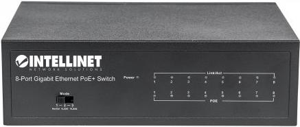 Der 8-Port Gigabit Ethernet PoE+ Switch von Intellinet Network Solutions ist eine exzellente Lösung für die Übertragung von Daten und Strom an PoE-kompatible Geräte über Cat5e- oder Cat6-Netzwerkkabel. Ausgestattet mit acht Gigabit-Ports, bietet dieser Switch Stromversorgung von Access Points und Bridges, VoIP-Telefonen, IP-Kameras und vieles mehr, während er gleichzeitig Übertragungsgeschwindigkeiten bis zu 1000 Mbit/s liefert.