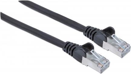 Intellinet Network Patch Cable,Cat.7 Rohkabel Cable/Cat6A Plugs, 1m, Black, Copper, S/FTP, LSOH / LSZH, PVC, RJ45, Gold Plated Contacts, Snagless, Booted, Lifetime Warranty, Polybag - Patch-Kabel - RJ-45 (M) zu RJ-45 (M) - 1,0m - SFTP -Cat.7 Rohkabel (Kabel) / CAT 6a (Anschlüsse) - halogenfrei, geformt, ohne Haken - Schwarz (740685)
