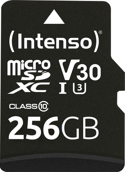 • Intenso microSD-Card, 256 GB Speicherkapazität, bis zu 45 MB/Sekunde Schreibgeschwindigkeit, bis zu 100 MB/Sekunde Lesegeschwindigkeit, UHS-I, SD-Adapter (3433492)