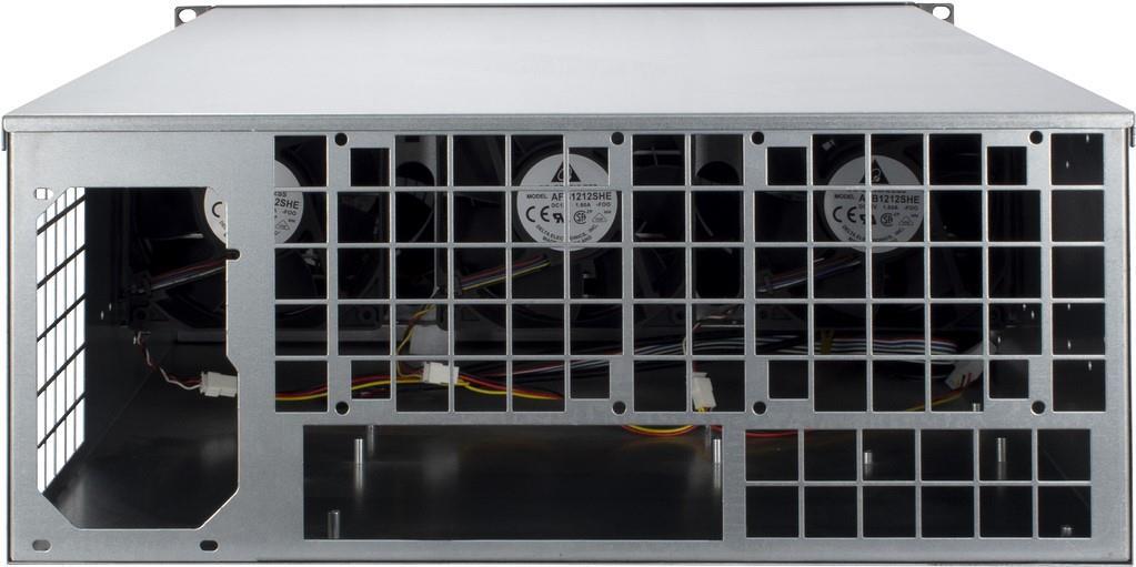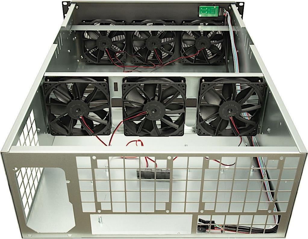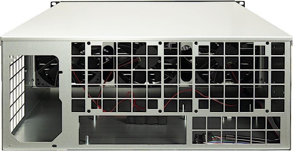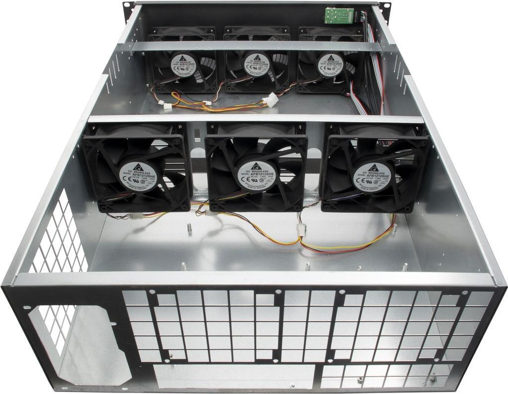 Das 4W2 ist ein Rack im 4HE Format mit langer Einbautiefe (635 mm) und ist darauf ausgelegt, neben einem Mainboard eine große Anzahl an Grafikkarten aufzunehmen. Dank robuster Bauweise bietet das Gehäuse den nötigen Halt für Ihre empfindliche Hardware. Zur optimalen Kühlung Ihrer Hardware sind bereits sechs leistungsstarke 120 mm Gehäuselüfter vorinstalliert. Zwei USB 2.0 Ports komplettieren das Angebot.