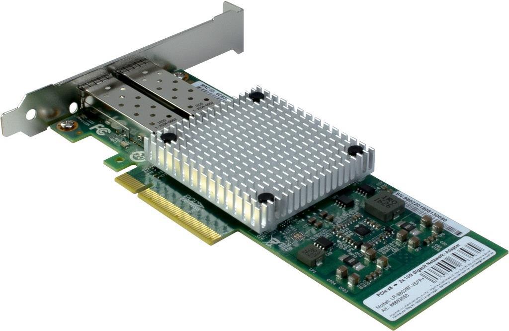 Der verbaute Intel Chipsatz 82599 bietet hervorragende Leistung und sorgt für schnellen Datendurchsatz. Zudem wird durch die LR-9802BF-2SFP+ der Hauptprozessor weiter entlastet, sodass der Netzwerktransfer nicht mehr so stark den Hauptprozessor beansprucht, was oft beim Einsatz von normalen Netzwerkkarten in einem Serverumfeld der Fall ist. Der Anschluss erfolgt durch den schnellen SFP+ Standard.