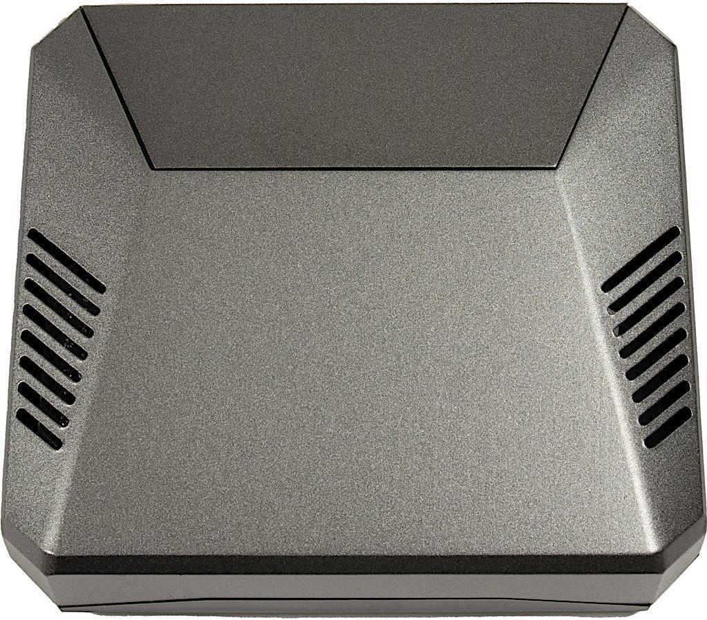 Das Gehäuse ist aus einer hochwertigen Aluminiumlegierung gefertigt, welche aktiv zur Wärmeableitung beiträgt. Zusätzlich sorgen zwei integrierte Wärmeleiter, die direkten Kontakt mit CPU und RAM haben, für eine optimale Wärmeabfuhr. Lüftungsschlitze in der Front und im hinteren Teil sowie ein vorinstallierter 30mm Lüfter unterstützen dabei aktiv.