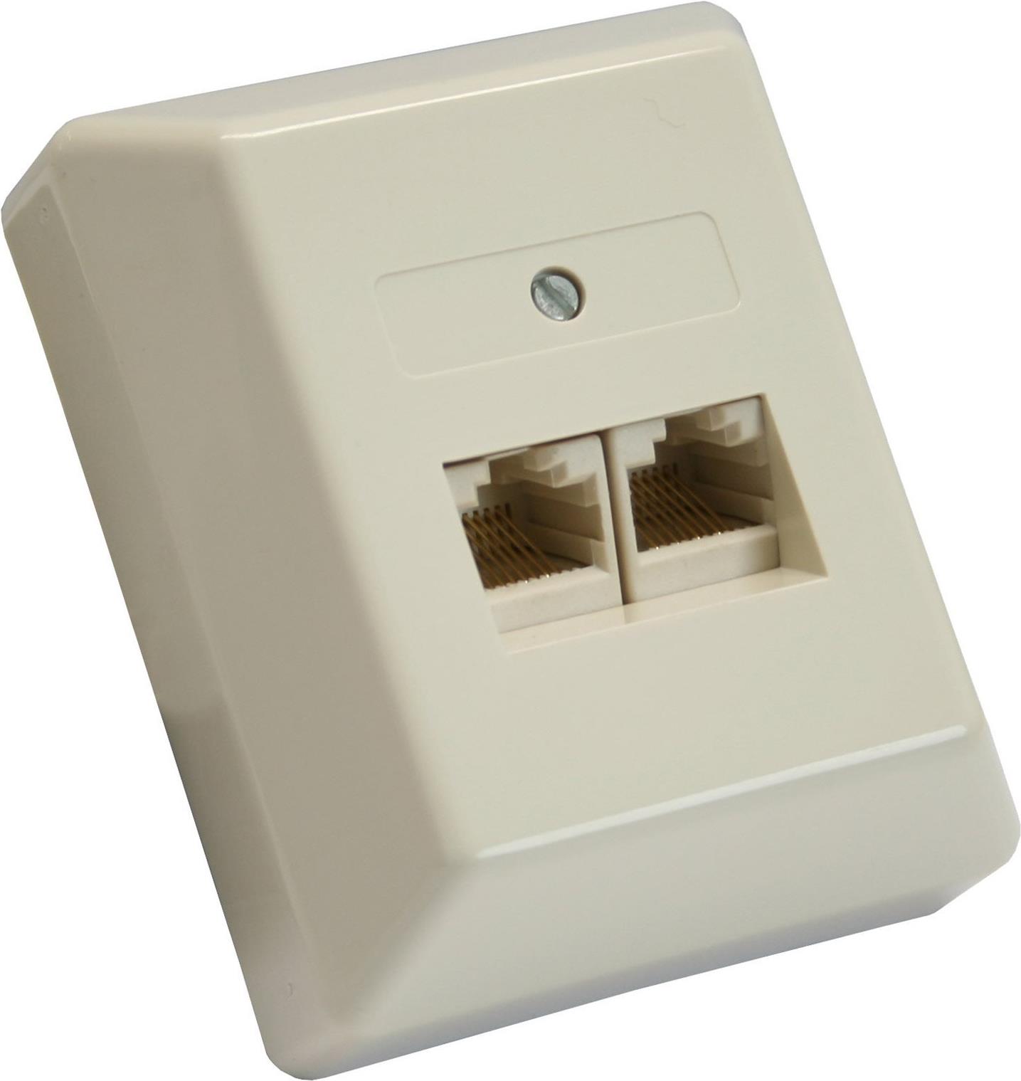 InLine® ISDN Anschlussdose, 2x RJ45 Buchse, Aufputz, Schraubanschluss 2x 8-fach• 2x RJ45 Buchse