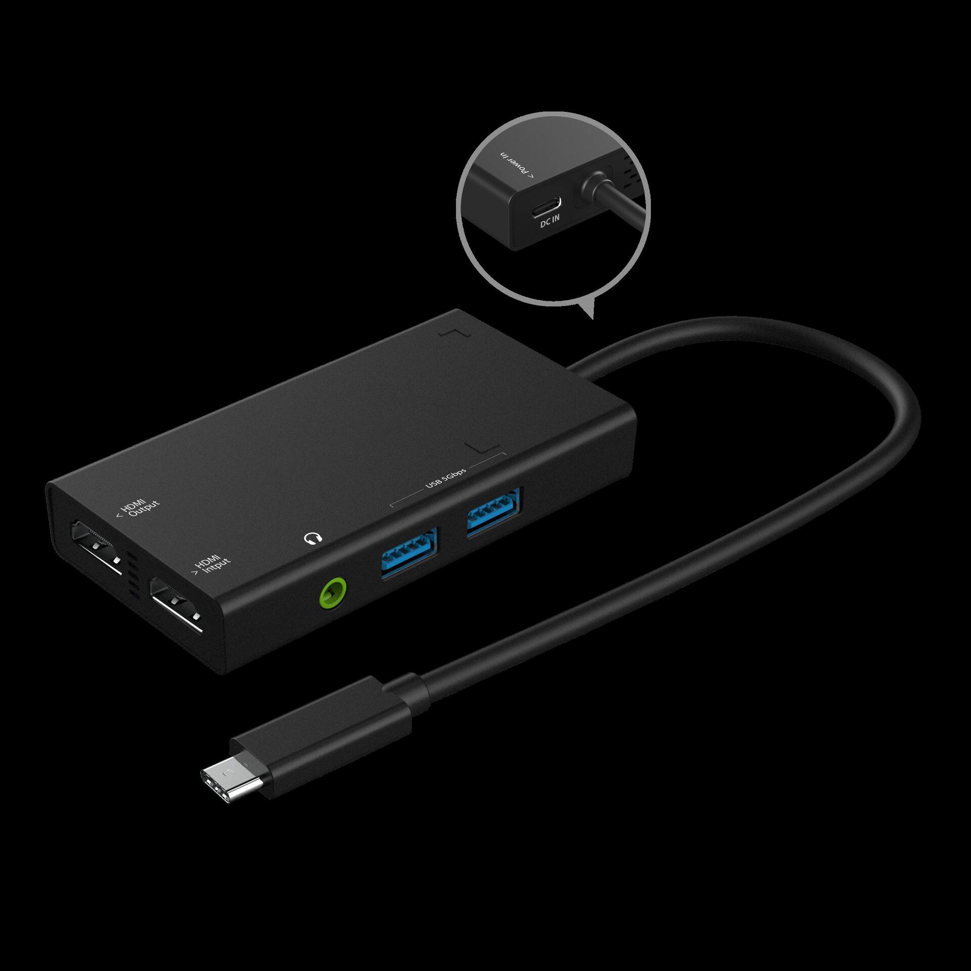 Der Videoaufnahme-USB -Hub ist ein Gerät, das zwei Zwecken dient, wobei eine HDMI -Aufnahmekarte mit einem USB-C -Hub kombiniert wurde. Dank 1080p-Videoaufnahmen und 4K-USB-C -Display sowie Power Delivery 3.0 können Sie UHD unterbrechungsfrei streamen und gleichzeitig Ihr angeschlossenes Gerät aufaden. Zudem ist der Hub mit zwei SuperSpeed-USB -Anschlüsse mit 5 Gb/s für weitere Konnektivität von Peripheriegeräten ausgestattet. Verpackt in einem kompakten und leichtgewichtigen Design ist dieser Videoaufnahme-Hub das perfekte Gerät für mobiles Streaming. Wird er nicht für Streaming-Zwecke verwendet, dient er als standardmäßiger USB-C -Hub, an den Sie zwei zusätzliche USB -Peripheriegeräte und ein 4K-HDMI -Display anschließen können. Er unterstützt außerdem Upstream-Ladevorgänge, sodass Ihr Laptop während der Verwendung ständig mit Strom versorgt wird.