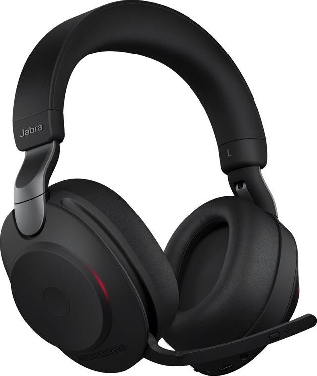 Jabra Evolve2 85 UC Stereo, Ladestation, Jabra Link 380c USB-C Adapter, 1,2m 3,5 mm Audiokabel, USB-C auf USB-A Ladekabel, Flugzeug-Adapter, Tragetasche, Schnellstartübersicht |