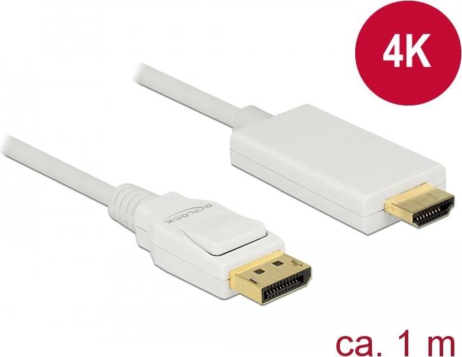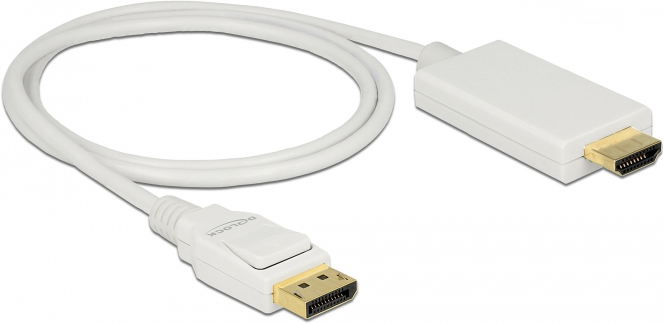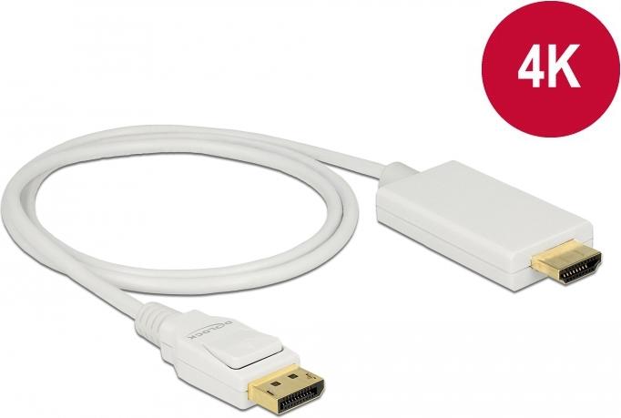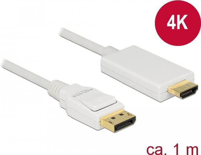 DeLOCK - Videokabel - DisplayPort / HDMI - DisplayPort (M) bis HDMI (M) - 1,0m - dreifach abgeschirmtes Twisted-Pair-Kabel - weiß - passiv (83817)