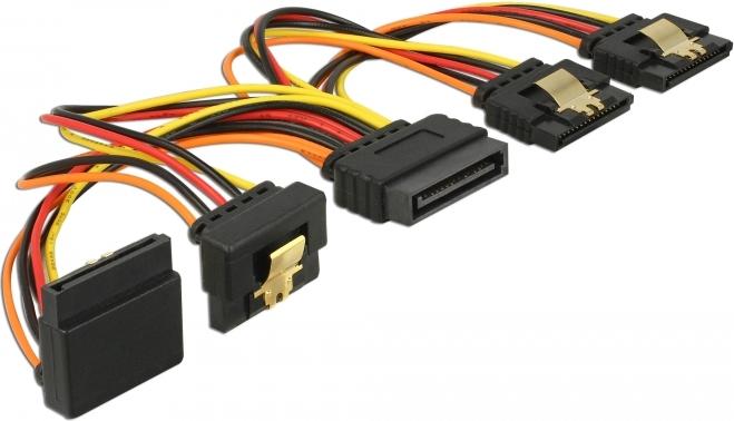 DeLOCK - Netz-Splitter - SATA Leistung (S) gerade bis SATA Leistung (R) angled / straight - 3,3 / 5 / 12 V - 15cm - eingerastet - Schwarz, Gelb, Rot, orange (60147)