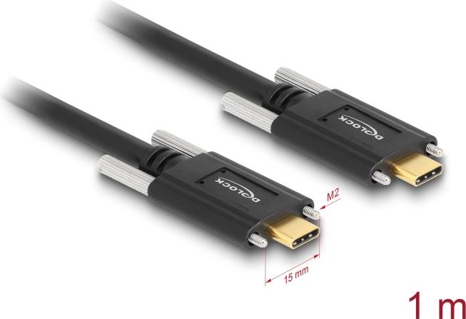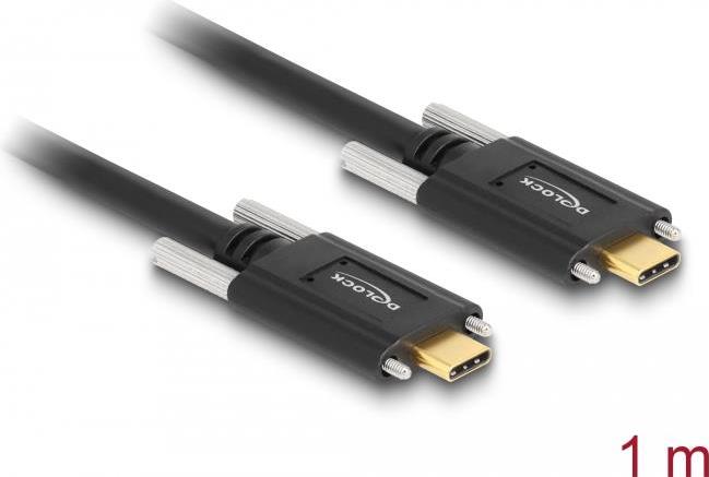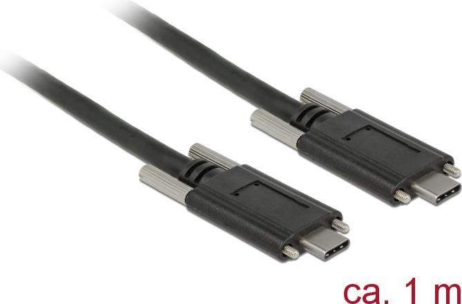 Delock - USB-Kabel - USB-C (M) zu USB-C (M) - USB 3,1 Gen 2 - 3 A - 1,0m - Daumenschrauben - Schwarz (83720)