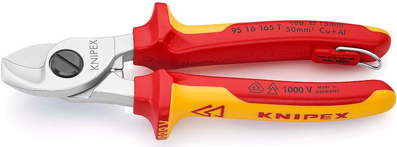Knipex 95 16 165 T Kabelschere Geeignet für (Abisoliertechnik) Alu- und Kupferkabel, ein- und mehrdrähtig 15 mm 50 mm²
