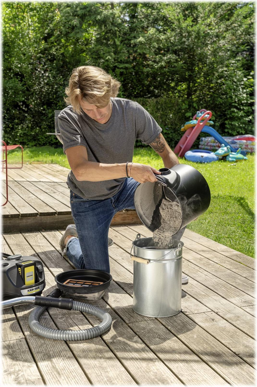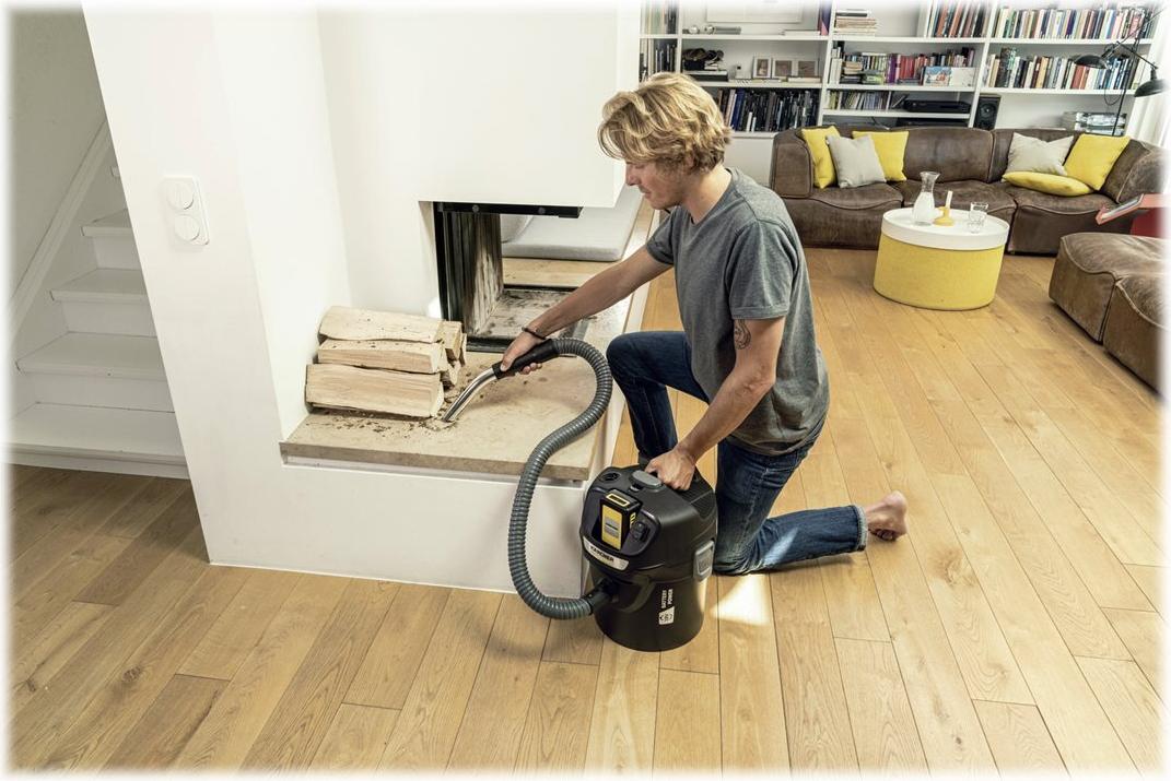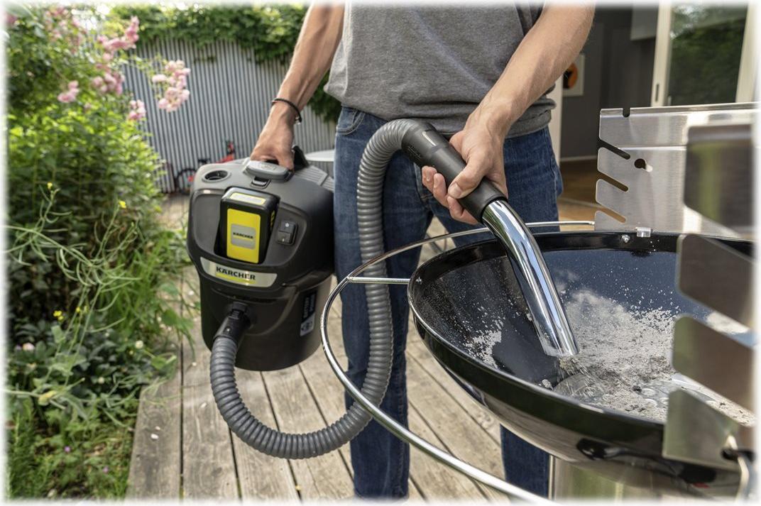 Mit dem kabellosen Aschesauger AD 2 Battery wird die schnelle Beseitigung von Asche aus Kaminöfen, Pelletheizungen oder Holzkohlegrills zu einem staubfreien Kinderspiel. Der kraftvolle 18 V Kärcher Battery Power-Wechselakku mit Real Time Technology zur Anzeige der Akkulaufzeit auf einem integrierten LCD-Display sorgt dazu für die nötige Ausdauer. Im Zusammenspiel mit durchdachten Innovationen, wie der ReBoost-Funktion zur effektiven Filterabreinigung auf Knopfdruck, ist eine hohe und insbesondere auch konstante Saugleistung jederzeit gewährleistet. Grobschmutz, Asche oder auch feine Staubpartikel werden zuverlässig aufgesaugt - dank des abgeschrägten Handrohrs auch an schwer zugänglichen Stellen. Der flexible Saugschlauch aus ummanteltem Metall sowie der flammenhemmende 14-Liter-Auffangbehälter garantieren dabei ein Höchstmaß an Sicherheit. Und durch den robusten Flachfaltenfilter mit vorgelagertem Grobschmutzfilter aus Metall bleibt auch die Abluft staubfrei. Nach getaner Arbeit wird der Saugschlauch einfach in eine Vertiefung im Gehäuse des Geräts eingesetzt und alles platzsparend verstaut.