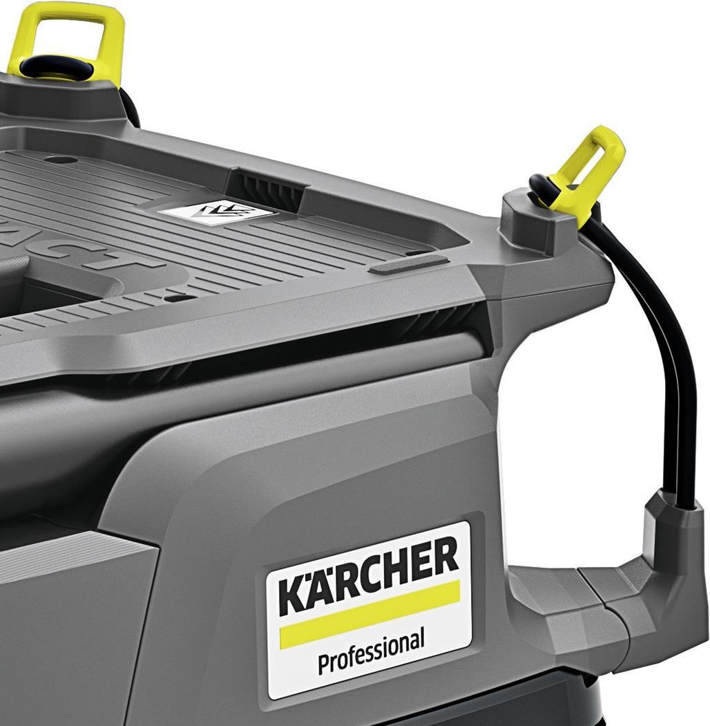 Der Kärcher Nass- und Trockensauger NT 30/1 Tact ist ein Universal-Gerät für professionelle Anwender aus den unterschiedlichsten Branchen. Der kompakte Allessauger überzeugt dank dem automatischen Filterabreinigungssystem Tact und dem feuchtigkeitsresistenten PES-Flachfaltenfilter bei der staubfreien Beseitigung großer Mengen Feinstaub über lange Arbeitsintervalle hinweg. Schmutz und Flüssigkeiten werden zuverlässig in einem robusten Behälter gesammelt, der über einen Bumper und stabile Metalllenkrollen verfügt. Das einfache Handling und die durch den zentralen Drehschalter kinderleichte Bedienung des Geräts, erleichtern die Arbeit enorm.