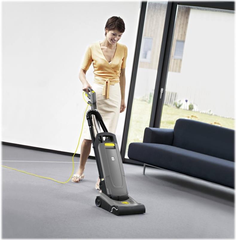 Mit einer großen Arbeitsbreite von 300 Millimetern ist der Teppichbürstsauger CV 30/1 ideal zur Reinigung auch größerer Flächen geeignet - ob im Einzelhandel, in Ausstellungsräumen, in Hotellerie und Gastronomie oder vielen weiteren Einsatzgebieten. Auch Ränder, Leisten und kleine Nischen werden dabei mühelos, schnell und gründlich mittels des herausnehmbaren Saugrohrs mit Dehnsaugschlauch gereinigt. Innovative Ausstattungsdetails, wie beispielsweise die patentierte Fliehkraftkupplung, die bei Blockaden der Bürste durch Schmutz die Walze selbsttätig auskuppelt, oder die automatische Bürstenentlastung, die in Ruhestellung eine Verformung des Bürstenstreifens sowie eine Beschädigung des Teppichbodens verhindert, belegen das durchdachte und sichere Gerätekonzept. Zwei stabile Gelenke zwischen Bürstenkopf und Saugteil sowie die Gleitplatte aus hochwertigem Kunststoff stehen stellvertretend für den hohen Qualitätsanspruch.