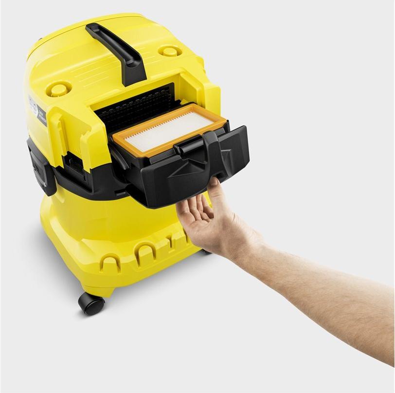 Der Kärcher WD 4-18 Dual ist ein vielseitiger Staubsauger, der sowohl für Trocken- als auch für Nassreinigungsaufgaben geeignet ist. Er verfügt über ein großzügiges Fassungsvermögen von 20 Litern, was einen längeren Einsatz ohne häufiges Entleeren ermöglicht. Mit einem Flachfaltenfilter und einem effizienten beutellosen Design sorgt dieser Kanistersauger für eine starke Saugleistung, um Staub und Schmutz effektiv zu sammeln. Der 2,2 m lange Schlauch mit einem Durchmesser von 35 mm bietet eine gute Reichweite für verschiedene Reinigungsanwendungen. Der integrierte Zubehörbehälter sorgt für Ordnung bei den erforderlichen Werkzeugen, während der ergonomische Griff eine bequeme Handhabung während des Betriebs gewährleistet.