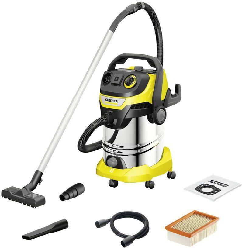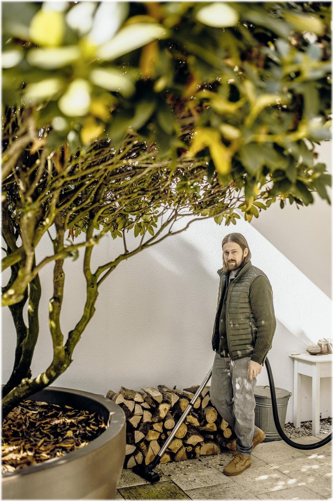 Ultra saugstark und energieeffizient bei nur 1300 Watt Stromverbrauch: Der Nass-/Trockensauger WD 6 P S V-30/6/22/T besitzt einen 30-Liter-Edelstahlbehälter, ein 6 m langes Kabel und einen 2,2 m langen Saugschlauch. Mit der Ablassschraube werden aufgesaugte Flüssigkeiten komfortabel abgelassen. Über die integrierte Steckdose mit Ein-/Ausschaltautomatik können Elektrowerkzeuge wie Sägen oder Schleifgeräte angeschlossen werden. Der entstehende Schmutz wird direkt abgesaugt. Mit dem Drehschalter lässt sich die Saugleistung bedarfsgerecht regulieren. Die Entnahme des Flachfaltenfilters erfolgt ganz ohne Schmutzkontakt durch das Herausklappen der Filterkassette. Zudem lässt sich der Filter durch Betätigung der Abreinigungstaste effizient reinigen und so die Saugleistung einfach wiederherstellen. Bei der Reinigung filigraner Gegenstände kommt die Blasfunktion zum Einsatz. Der abnehmbare Handgriff mit elektrostatischem Schutz erlaubt eine Zubehöranbringung direkt am Saugschlauch, das ist vor allem beim Saugen von Feinstaub nützlich. Weitere Pluspunkte sind die platzsparende Verstauung des Saugschlauchs durch Einhängen am Gerätekopf auf beiden Seiten und die Parkposition der Bodendüse.