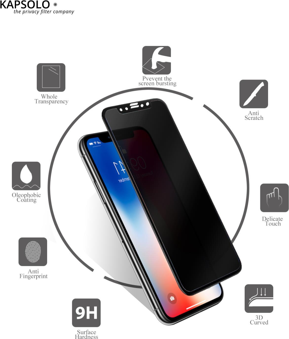 KAPSOLO Privacy Schutzglas Apple iPhone 13 MINI KAPSOLO Privacy Displayschutzglas, vollflächiges Displayschutz mit abgerundete Kanten, Temperglas, 3D schutzglas (KAP30418)