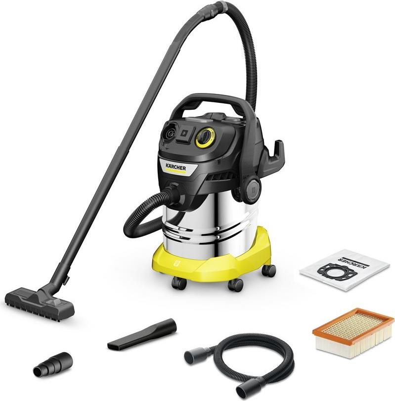 Der Kärcher KWD 6 P S V-25/6/22 ist ein vielseitiger Kanisterstaubsauger, der sowohl für die Nass- als auch für die Trockenreinigung geeignet ist. Mit seinem 25-Liter-Edelstahlbehälter kann dieser Staubsauger große Aufgaben bewältigen und bietet gleichzeitig eine einstellbare Saugleistung. Der Flachfaltenfilter sorgt für eine effiziente Staubaufnahme, egal ob mit oder ohne Beutel, und eignet sich für verschiedene Reinigungsumgebungen. Die integrierte Aufbewahrung für Zubehör sorgt für Ordnung, während die Gebläsefunktion den Nutzen für Arbeiten im Freien erweitert. Mit einer Luftstromrate von 75 l/s und einem Saugdruck von 28 kPa bietet dieser Staubsauger eine starke Leistung. Mitgeliefertes Zubehör wie flexible Schläuche, eine Fugendüse und eine umschaltbare Bodenbürste erweitern die Reinigungsmöglichkeiten und stellen sicher, dass Benutzer sich an verschiedene Oberflächen anpassen und enge Stellen erreichen können. Das 6 m lange Netzkabel bietet eine ausreichende Reichweite, während die integrierte Steckdose für Elektrowerkzeuge den direkten Anschluss an Elektrowerkzeuge ermöglicht und die Effizienz bei Reinigungsarbeiten erhöht.