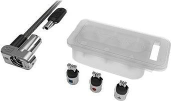 Das neue universelle 3-in-1 Laptopschloss ist ein echter Alleskönner, denn damit können Sie Ihren Laptop sichern, ganz gleich ob mit Standard, Nano oder Wedge-Shaped Sicherheits-Slot. Die Aufsätze für das Schloss lassen sich leicht austauschen und sind an einem Schlüsselring gesichert, so dass unbenutzte Aufsätze immer griffbereit sind. Das einheitliche 5 mm-Schlüsselsystem, die patentierte Hidden Pin -Technologie und ein Karbonstahlkabel liefern einen zuverlässigen Diebstahlschutz. Ein dreh- und schwenkbares Gelenk am Kabel ermöglicht eine flexible Bewegung zum einfachen Anbringen des Schlosses. Zu den weiteren Besonderheiten gehören das Register & Retrieve -Programm für einen schnellen, sicheren und einfachen Ersatzschlüsselservice und eine fünfjährige Garantie, die von Kensington, dem Erfinder und weltweiten Marktführer für Laptop-Sicherheitsschlösser, unterstützt wird. Alle Kensington-Schlösser sind verifiziert und auf Festigkeit, physische Widerstandsfähigkeit und mechanische Belastbarkeit getestet.