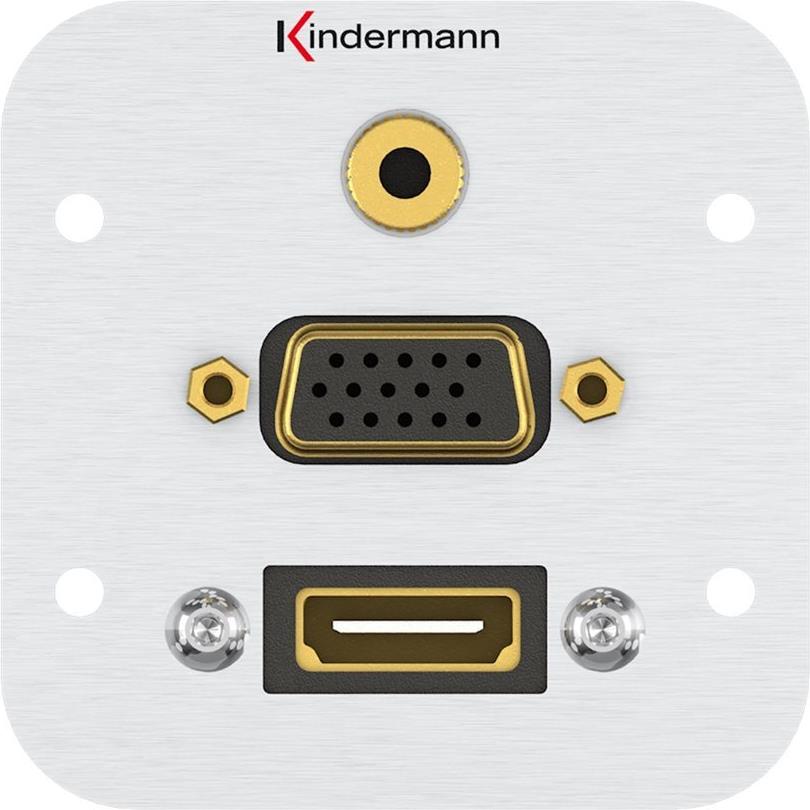 Kindermann 7441000586. Buchsen-Typ: HDMI + VGA + 3.5mm, Module Menge (max): 1 Modul(e). Produktfarbe: Aluminium, Material: Aluminium. Breite: 54 mm, Höhe: 54 mm, Tiefe (min): 5,8 cm (7441000586)