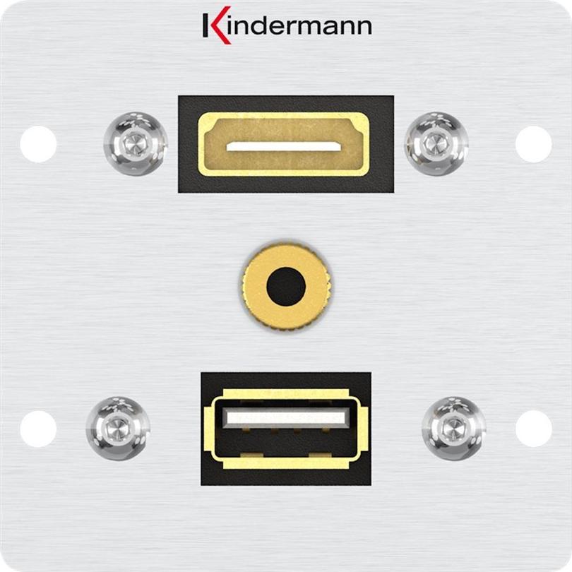 Kindermann Konnect alu 50 - Modulares Faceplate-Snap-In - Mini-Phone Stereo 3,5 mm, HDMI, USB 3.0 Type A (7444000547)
