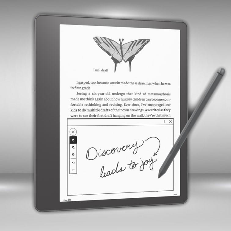Mit seinem 10,2 Zoll großen, blendfreien Paperwhite-Display (300 ppi) eignet sich der Kindle Scribe perfekt zum Lesen und Schreiben, selbst bei direkter Sonneneinstrahlung. Das große Display bietet Platz für Notizen und Tagebucheinträge und macht es einfach, Schriftgröße und Randbreite für besseren Lesekomfort anzupassen. Das Schreiben auf dem Kindle Scribe fühlt sich an wie das Schreiben auf Papier. Vom natürlichen Griff des Stifts in Ihrer Hand bis hin zum Geräusch, das Sie beim Schreiben hören - die Oberfläche des Kindle Scribe ist für das bestmögliche Lese- und Schreiberlebnis konzipiert.