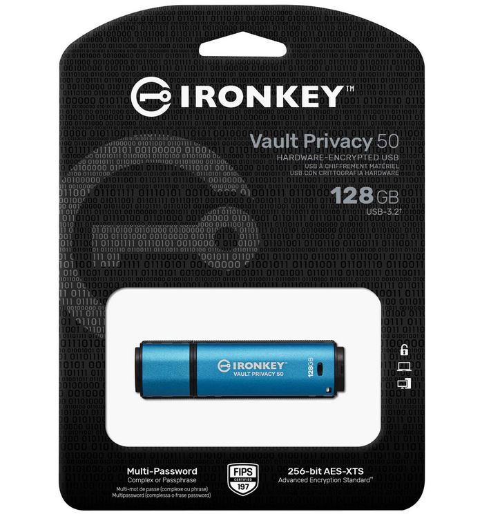 • KINGSTON 128GB IronKey Vault Privacy 50 USB AES-256 Encrypted FIPS 197 (IKVP50/128GB)