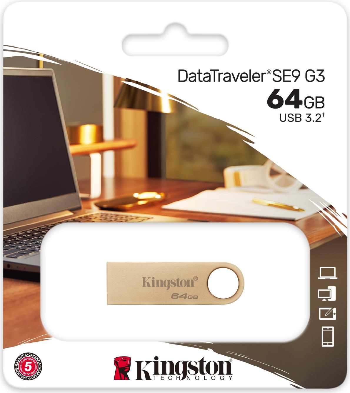 Kingston DataTraveler SE9 G3 - USB-Flash-Laufwerk - 64GB - USB 3,2 Gen 1 - Gold (DTSE9G3/64GB)