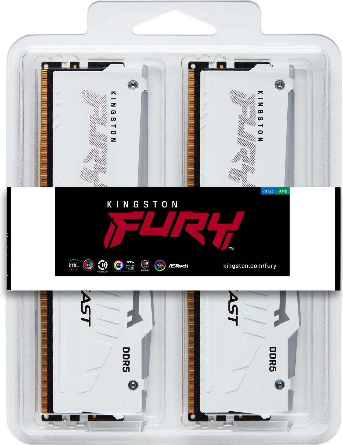 Kingston Technology FURY Beast 32GB 6800MT/s DDR5 CL34 DIMM (2er-Kit) White RGB EXPO (KF568C34BWEAK2-32)