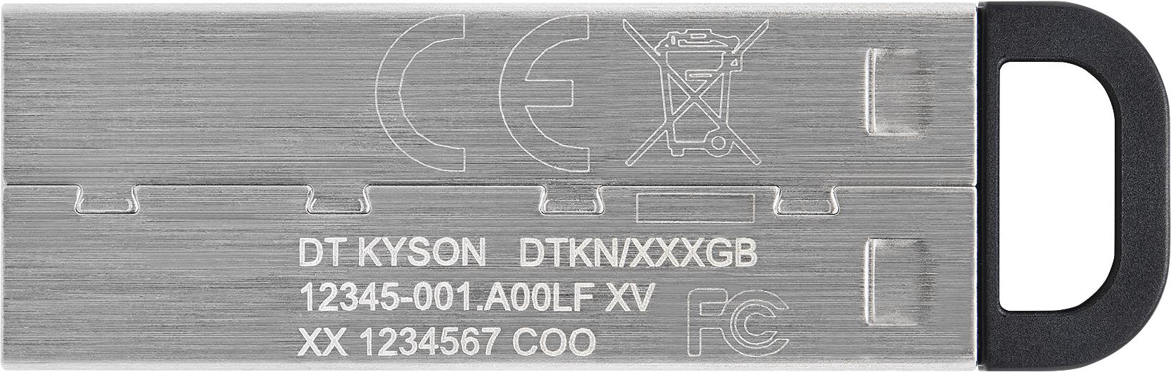 Der DataTraveler Kyson von Kingston ist ein hochleistungsfähiger USB-A-Stick mit extrem hohen Übertragungsgeschwindigkeiten, die bequeme Dateiübertragungen ermöglichen. Durch das kappenlose Metalldesign kann keine Kappe verloren gehen, und die funktionelle Öse erleichtert es, ihn überallhin mitzunehmen.