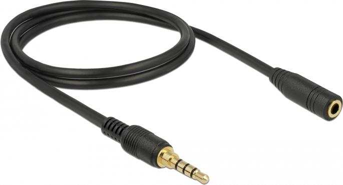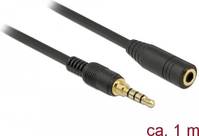 DeLOCK - Audioverlängerungskabel - 4-poliger Mini-Stecker (M) bis 4-poliger Mini-Stecker (W) - 1,0m - Schwarz (85629)