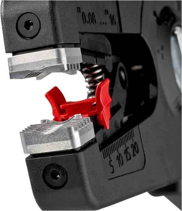 Der Einsatzbereich der KNIPEX PreciStrip 16 ist riesig: Mit dieser Abisolierzange lassen sich feinste, flexible und massive Kabel schnell und präzise abisolieren. Der Kapazitätsbereich reicht dabei von 0,08 bis 16 mm². Dank Feinjustierung isoliert das Werkzeug innerhalb des großen Kapazitätsbereichs auch da automatisch ab, wo herkömmliche Automatiken sonst oft scheitern. Passend zu speziellen Materialien oder Temperaturbedingungen lässt sich die KNIPEX PreciStrip 16 Abisolierzange ganz einfach per Verstellrad feinjustieren. Einen exakten Schnitt garantieren parabelförmige Abisoliermesser. Halbrunde Metall-Haltebacken sorgen für perfekten Grip.