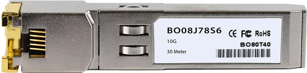 HPE Aruba R9F85A kompatibler 10GBASE-T SFP+ Transceiver mit RJ45 Anschluss nach MSA Standards von der Marke BlueOptics. Der HPE Aruba R9F85A kompatible 10GBASE-T RJ45 SFP+ hat eine ...