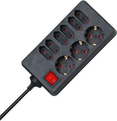 3+6-fach Steckdosenleiste mit 1-poligem, beleuchteten Schalter, gedrehten Töpfen und erhöhtem Berührungsschutz, 1,4m Zuleitung H05VV-F3G1,5mm², 16A, 250 V~, ...