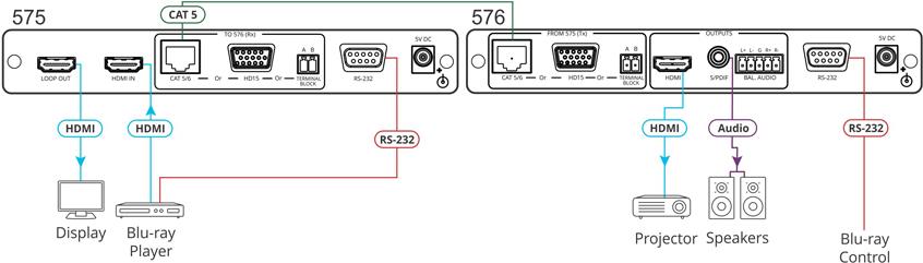 | Schnittstellen | 1 x HDMI (Eingang) 1 x HDMI (Loop-Through) 1 x Netzwerk (Ausgang) - RJ-45 1 x VGA (Ausgang) - HD-15 1 x Audio (Ausgang) - Terminalblock 1 x RS-232 (bidirektional) - DB-9 |
