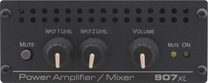 907xl ist ein Hochleistungs-Endverstärker für symmetrische und unsymmetrische Stereo-Audio Signale mit Line-Pegel. Die Anschlüsse sind Schraubklemmen (symmetrisch) bzw. Cinch-Buchsen (unsymmetrisch). Er verstärkt das Eingangssignal mit 40 W pro Kanal an die 8 ? Lautsprecherausgänge.