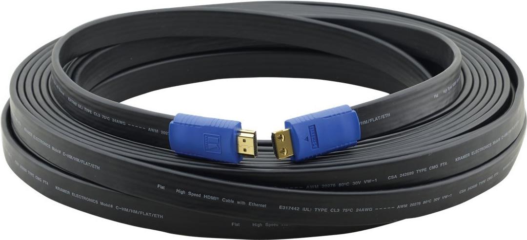 Kramer C-HM/HM/FLAT/ETH Series C-HM/HM/FLAT/ETH-25 - HDMI-Kabel mit Ethernet - HDMI männlich zu HDMI männlich - 7,6m - Doppelisolierung - flach (97-01014025)