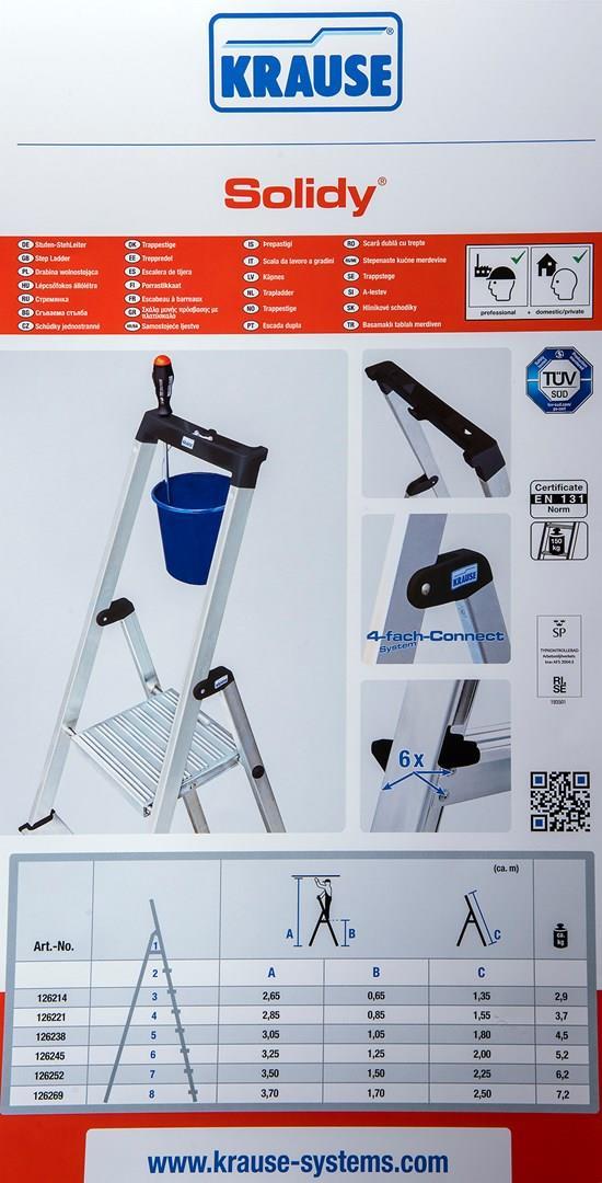 Krause Solidy - Stufenleiter - 4 Stufen - Arbeitshöhe: 2.85 m - Aluminium (126221)