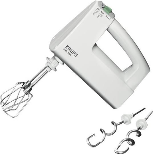 Noch nie war Mixen so einfach: Mit dem Krups 3 Mix 7000 Handmixer stellen Sie im Handumdrehen perfekten Back- oder Rührteig, Eischnee und Schlagsahne her. Dieses einfach zu bedienende Küchengerät ist mit Schneebesen aus Edelstahl ausgestattet und sorgt dafür, dass Sie perfekten Eischnee für köstliche Baiser, Mousse, Soufflé, Schlagsahne und vieles mehr zaubern können. Die dicken Edelstahl-Knethaken sorgen dabei für ein perfektes Ergebnis für alle Teigarten - zur einfachen Zubereitung von leckerem Brot-, Pizzateig oder Hefegebäck. Dieser perfekte Handmixer wird durch den ergonomischen Griff - der für optimalen Halt und Bedienkomfort sorgt - und durch der stufenlosen Geschwindigkeitsregulierung - für eine perfekte Steuerung - abgerundet.