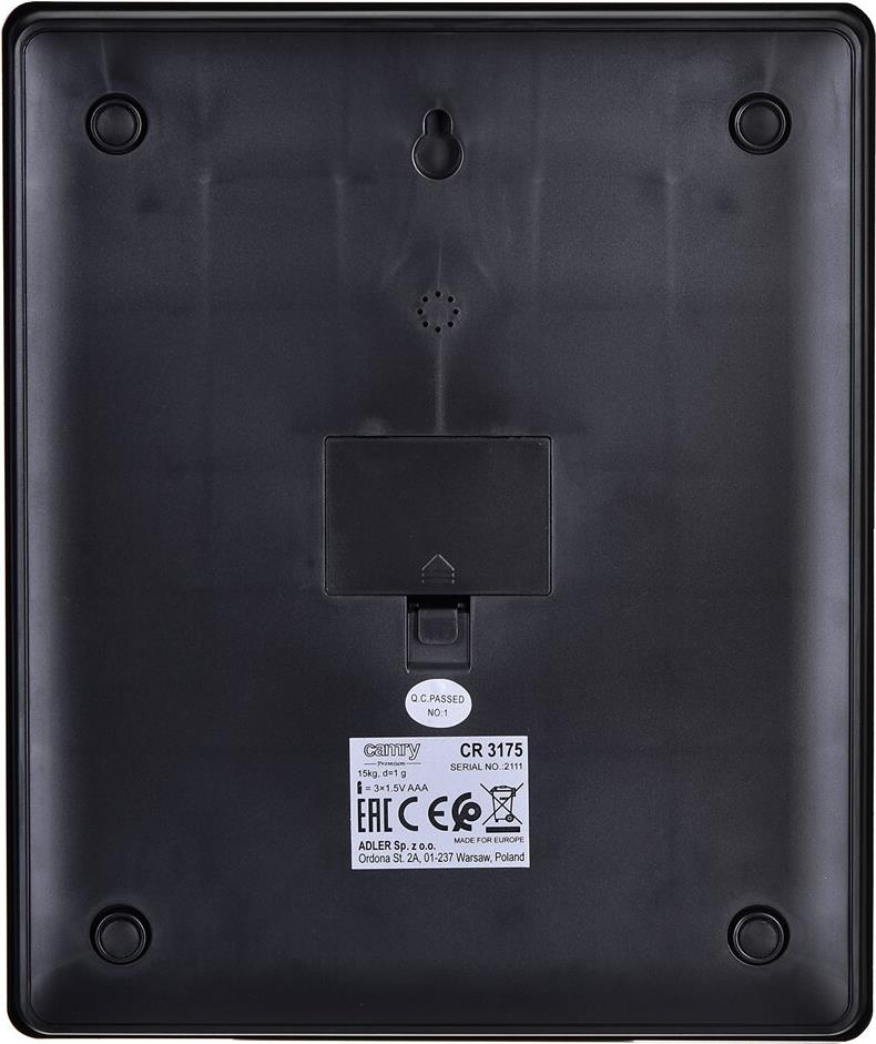 Küchenwaage Camry Kitchen Scale CR 3175 Maximales Gewicht (Kapazität) 15 kg, Teilung 1 g, Anzeigetyp LED, Schwarz (CR 3175)