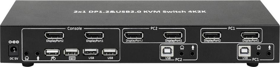 • KVM-Switch DisplayPort 1.2, 2-Port, Dual-View Hersteller: Techly (IDATA-DP-KVM2)