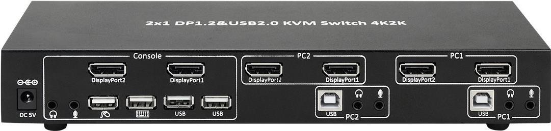 KVM-Switch DisplayPort 1.2, 2-Port, Dual-View Hersteller: Techly (IDATA-DP-KVM2)