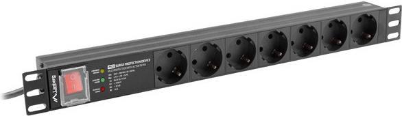 Lanberg PDU Steckdosenleiste 19" 1U 7x Schuko SPD-3MP 2m (PDU-PRO-07F-0200-BK)