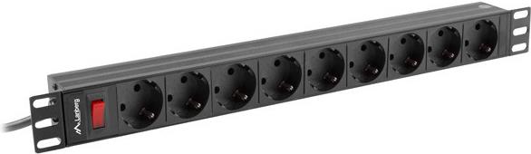 Lanberg PDU Steckdosenleiste 19" 1U 9x Schuko 3m schwarz (PDU-09F-0300-BK)