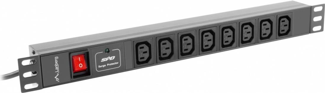 Lanberg PDU Steckdosenleiste 48,30cm (19") 1U 8x IEC C13 C20 2m schw. (PDU-08I-0200-C20-BK)