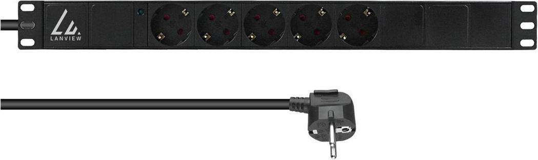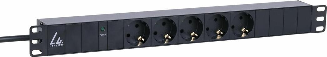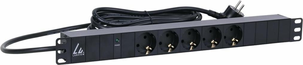 Lanview 19'' rack mount power strip 1U 10A with 5 x Schuko type - Rack-Modul (LVR-3MSCH-LIC-SCH5)