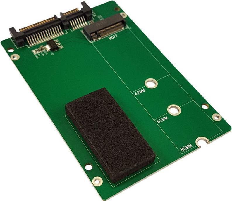 Mit Hilfe der Konverterkarte von SATA (2,5\" / 6,35 cm) auf M.2 (NGFF / SATA) können Festplatten in Notebooks und PCs durch M.2-SSDs ersetzt werden.