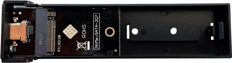 Externes USB 3.2 Gen2 x1-Gehäuse für eine NVMe- oder SATA M.2-SSD.