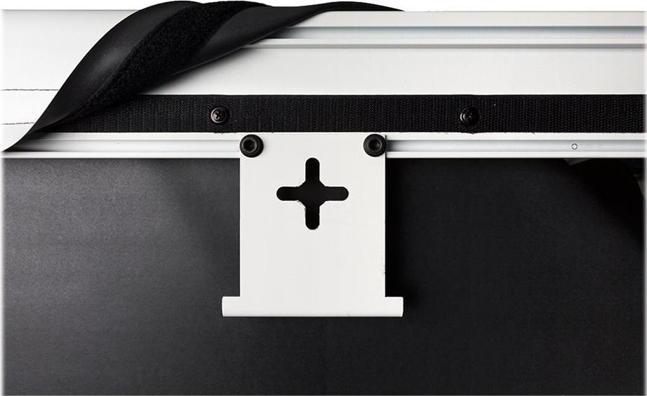 Die FullVision ist mit HD Progressive-Projektionstüchern erhältlich, der Technologie bei Projektionstüchern, die für 4K- und Ultra HD entwickelt wurden, um die Technologie Ihres Projektors maximal zu nutzen. Das Projektionstuch ist um den Aluminiumrahmen gespannt und auf der Rückseite befestigt. Die FullVision passt sich perfekt der Umgebung an, wenn sie nicht verwendet wird und liefert eine optimale Leistung während der Projektion.