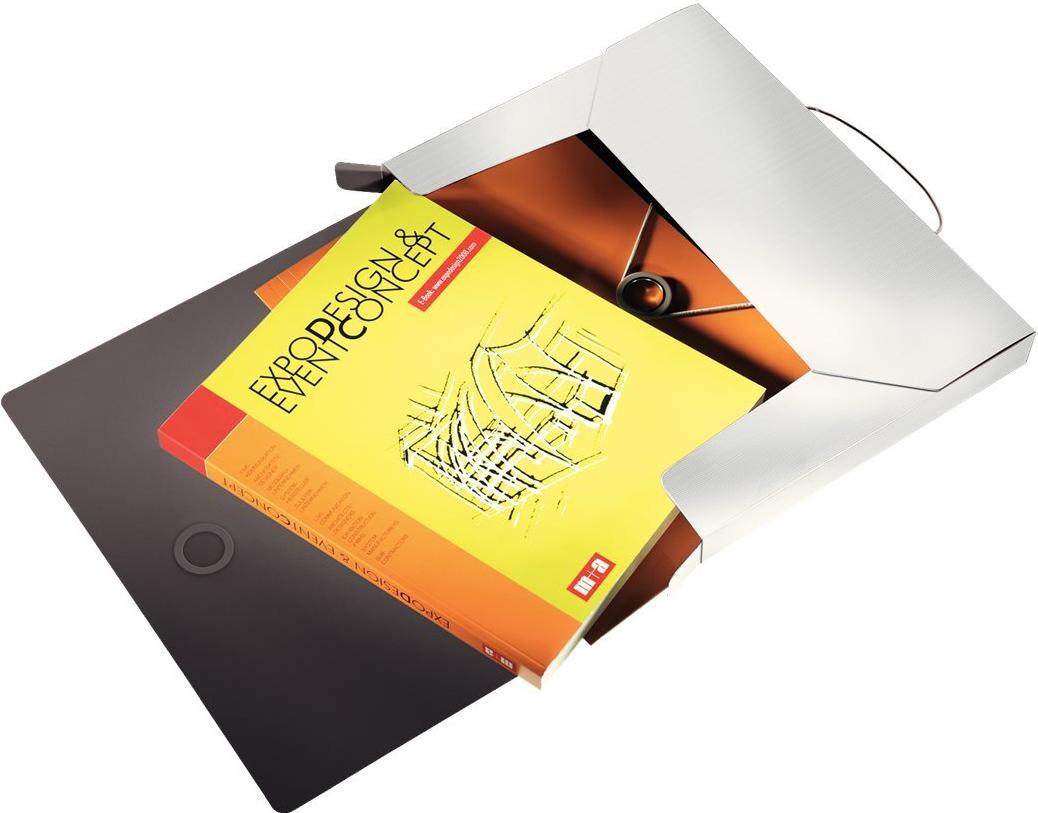 Qualitäts-Ablagebox aus PP im zeitlosen Solid Design und Duo-Optik mit leuchtender Außenfarbe und Innenseite in einem warmen Grauton. Ideal zum Transport oder zur Ablage von umfangreichen Unterlagen, Heftern oder anderen Solid Produkten.